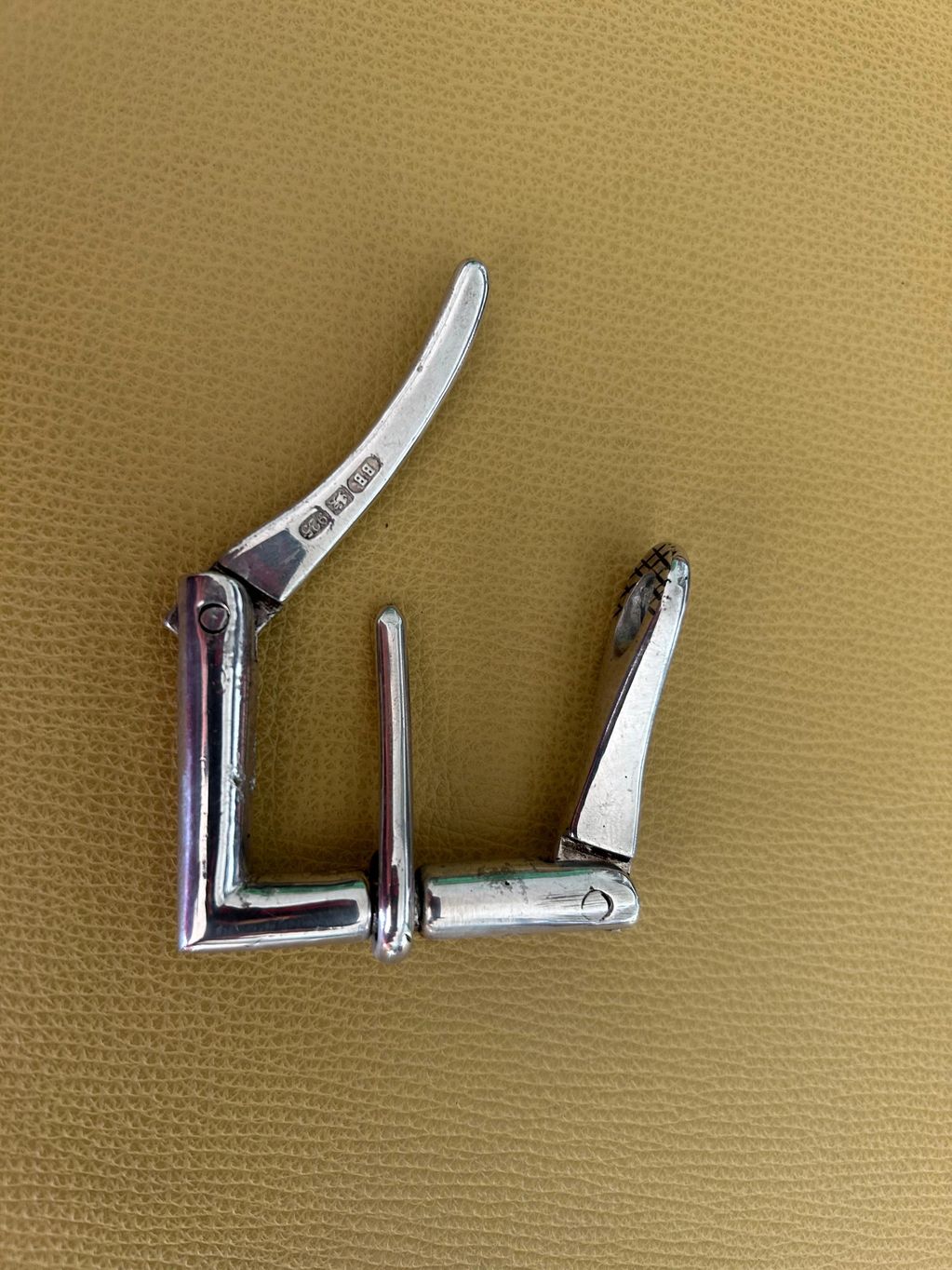Quick release solid silver belt buckle.